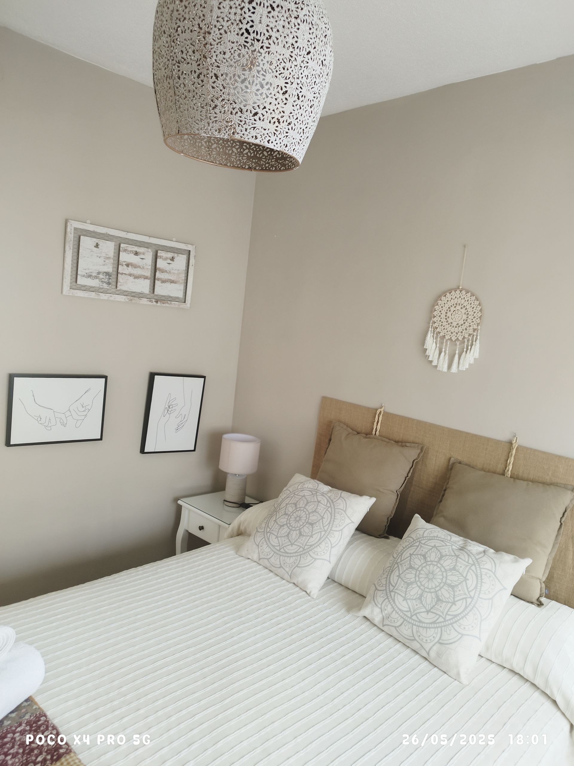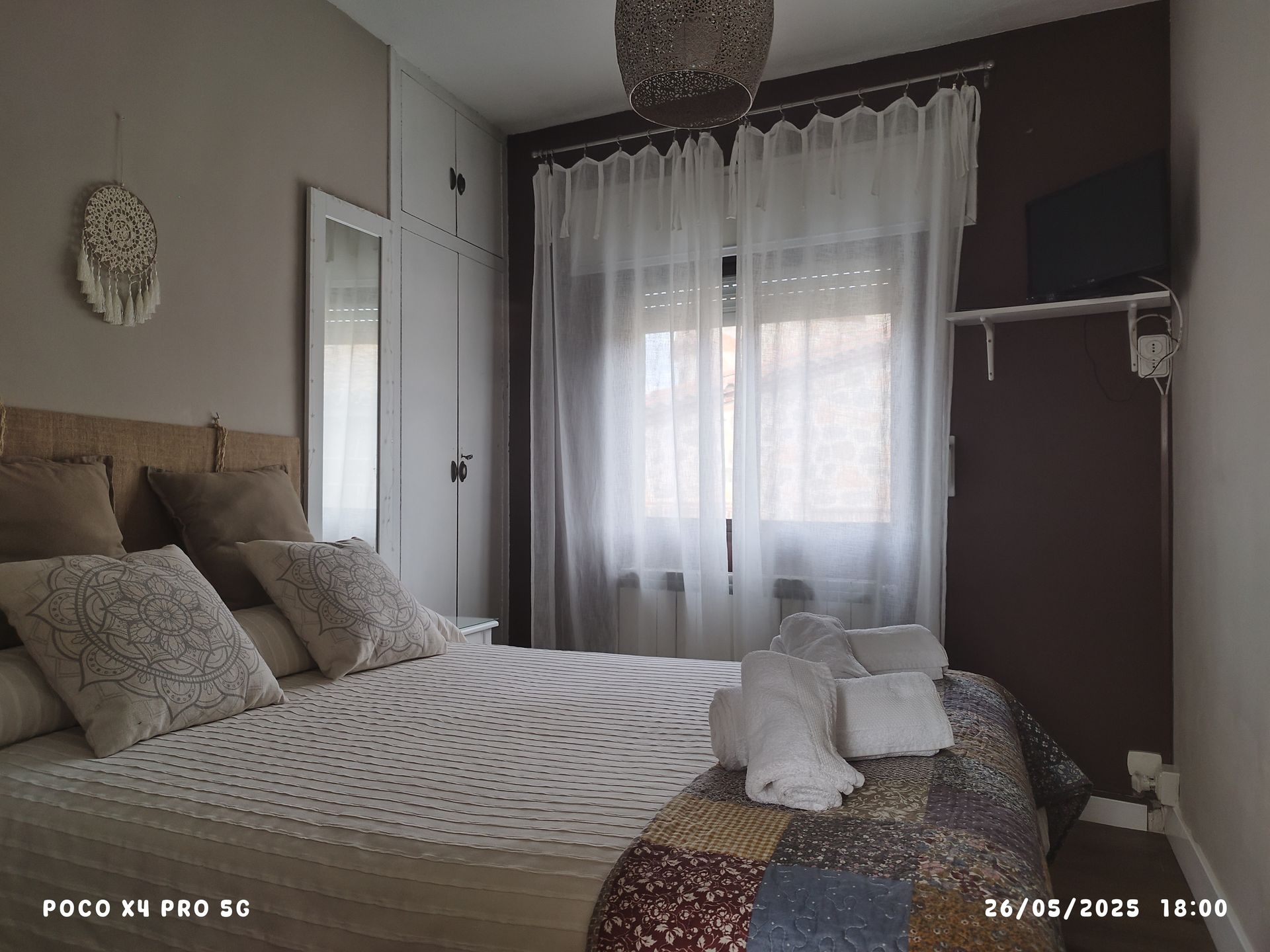 El dormitorio principal dispone de una cama de 135 cm, perfecta para descansar tras un día de actividades. El segundo dormitorio ofrece dos camas individuales de 90 cm, ideal para quienes viajan en grupo o con niños. Las instalaciones en la habitación son: